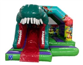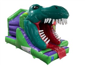 Deze springkussen is een leuk springkussen met mooie thema prints en frisse kleuren. Het springkussen heeft een glijbaan waar je letterlijk door de bek van de enorme 3d dino glijdt. Een ideaal kussen voor kinderfeestjes en buurtfeestjes. Deze past in vrijwel elke achtertuin of op bijvoorbeeld een oprit en is geschikt voor ongeveer 6 kinderen.